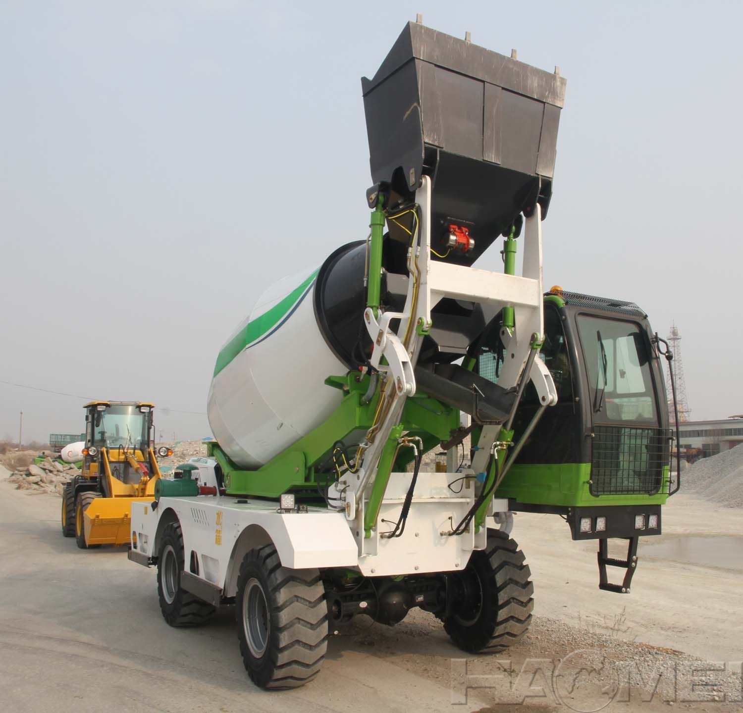 ولمواجهة هذه التحديات، طرحت شركة HAOMEI Machinery شاحنة خلط الخرسانة ذاتية التحميل بسعة 4 أمتار مكعبة، والتي تجمع بين التحميل والوزن والخلط والنقل الآلي في آلة واحدة. توفر هذه الشاحنة حلاً أكثر كفاءة ودقة ومرونة لإنتاج الخرسانة في الموقع.